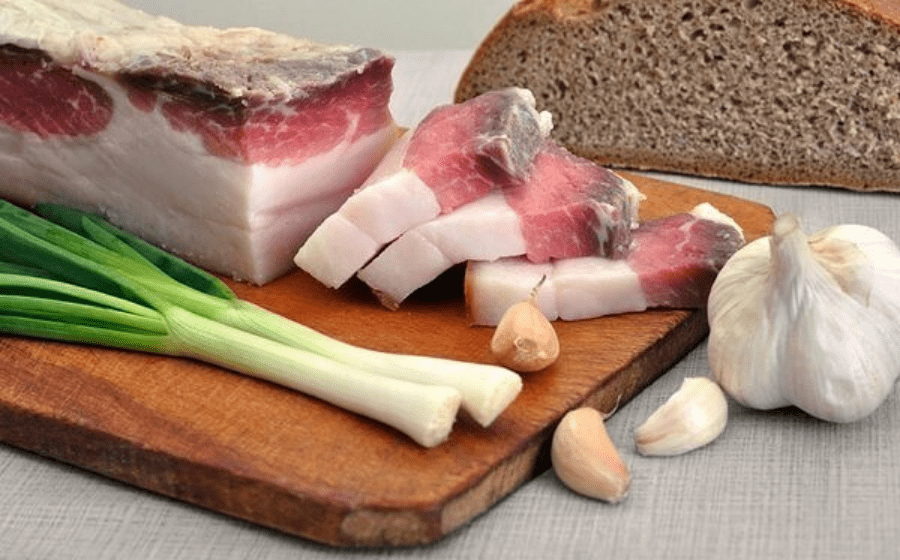 Сало с чесноком.