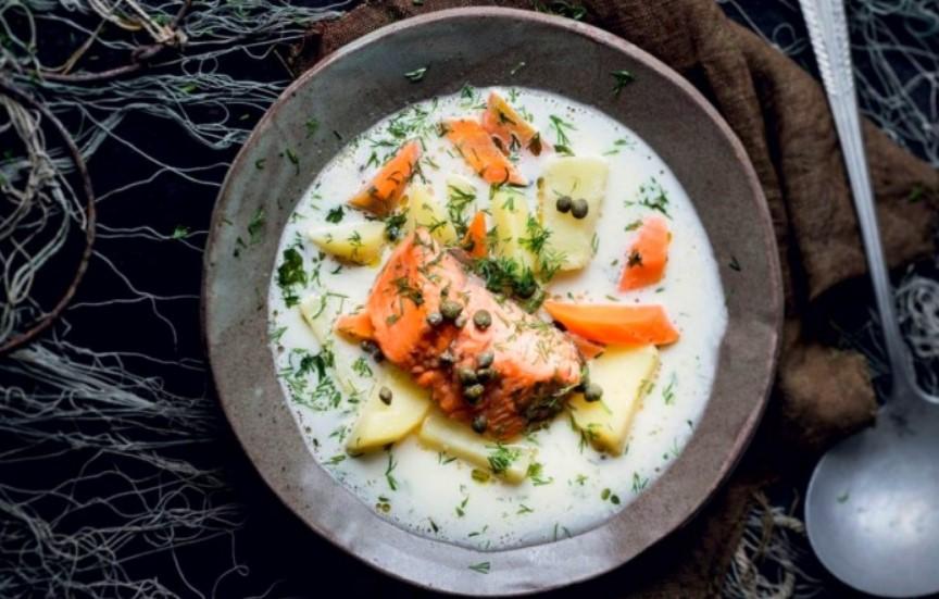 После этого добавьте в уху молоко перемешанное с пшеничной мукой (возьмите пол литра молока, добавьте в него полторы ложки пшеничной муки и перемешайте). Варите уху пока картошка и рыба не сварится, как уха сварится положите туда 1 столовую ложку сливочного масла и накрошите зелени (по пол пучка петрушки, укропа и зелёного лука). Всё, Финская уха готова.