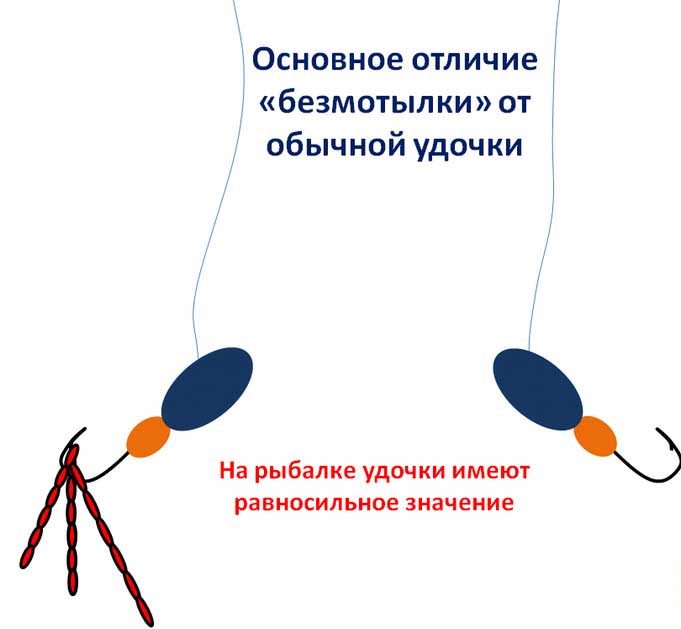 Если говорить строго, то безмотылка – это точно такая же зимняя мормышечная удочка, что применяется при обычной рыбалке. Вся разница только в том, что термин безмотылка произошел от того, что на мормышку не насаживается мотыль и другая наживка.