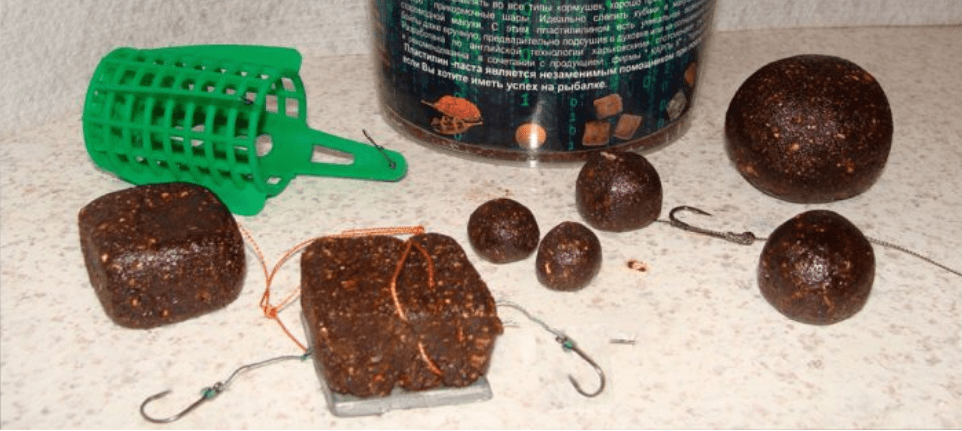 Такой пластилин прекрасно работает как прикормка и как самостоятельная насадка для любых белых рыб. Путем добавления различных ароматов можно «заточить» состав для ловли определенных рыб.