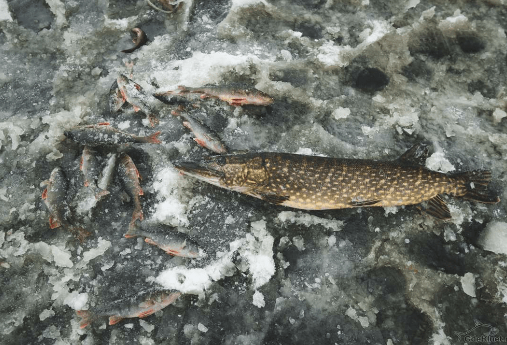 За весь день ни один флаг так и не поднялся, но, как оказалось, лунки моментально замерзали, и попросту леска вмерзала в лунку. А щуки были, и даже попалась одна трофейная на котлеты.