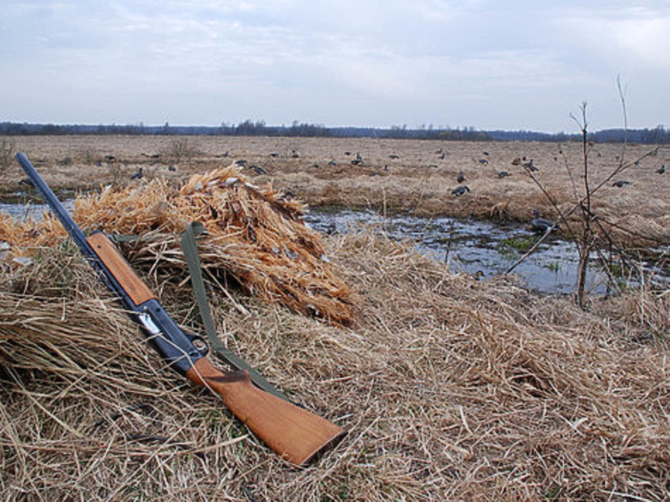 Прибыв на место, выгружаемся из машины, расчехляем ружья, собираем их, берем с собой средства маскировки и направляемся на облюбованное поле.