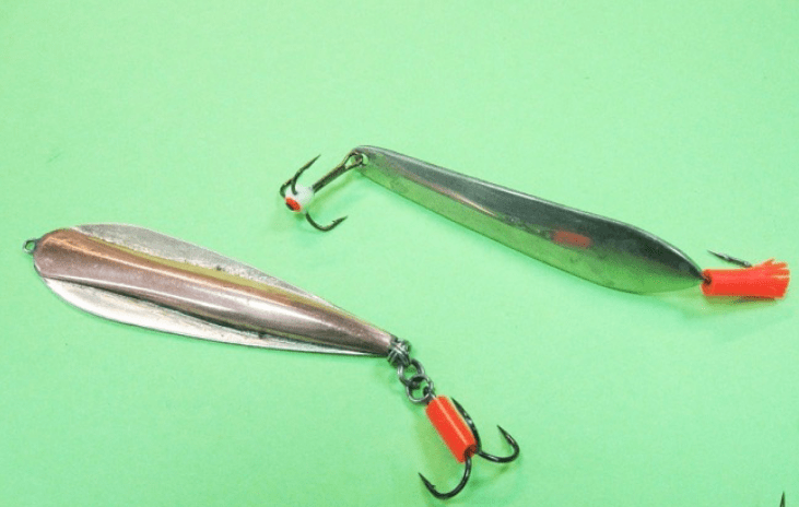 Для подобной короткой игры или копошения на дне хорошо подходят небольшие блёсны размером не более 5 сантиметров, имеющие кроме тройника в головной части ещё и крючок или двойник в «хвостике» приманки.