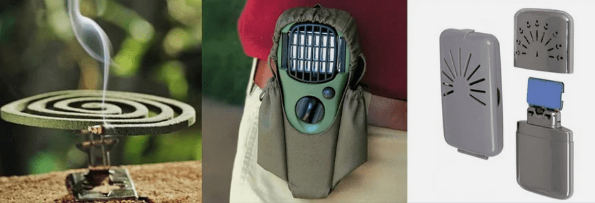 Противокомаринные спирали, расставляются по лагерю и поджигаются, при тлении спирали выделяется едкий дым и отпугивает комаров. Работает эффективно, если правильно установить с подветренной стороны.