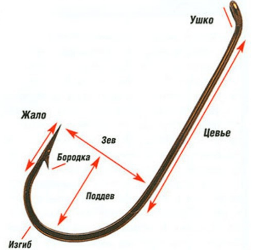 Есть два вида размеров крючков. По отечественной классификации номер крючка определяется по расстоянию между цевьем крючка и его жалом. Это расстояние измеряют в миллиметрах.