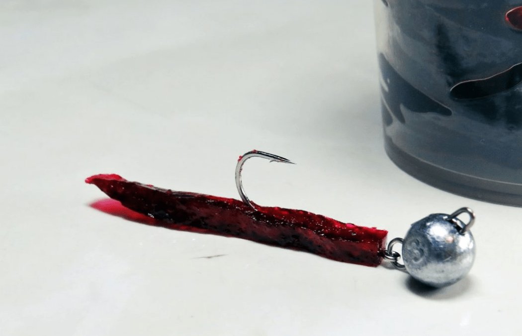 Нарезку делаем максимальной длины, а при насаживании на крючок, отщипываем нужную.