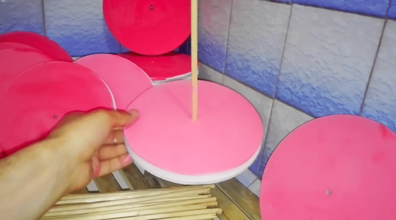 Материал размечается на деталь нужной формы циркулем или подходящим предметом. Вырезание осуществляется острым ножом или ножовкой, чтобы получились плавные линии, происходит обработка краев наждачкой.