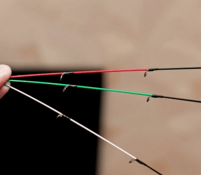 Жесткость зависит от теста квивертипа, для упрощения есть цветовые различия жёсткости (зелёный самый мягкий, далее желтые, белые, оранжевые самые жёсткие). Фидерное удилище обычно имеет в своём комплекте 3 хлыстика, выбор вершинки обычно происходит с помощью эксперимента, начинаем с самой мягкой и далее подбираем под условия ловли.