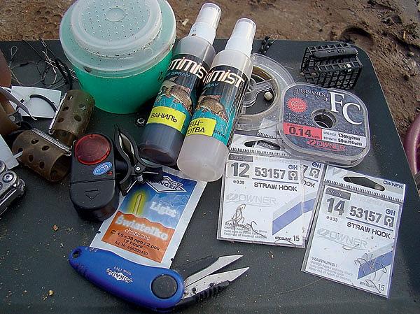 Закормив выход из ямы, возвращаемся на берег и приступаем к организации рабочего места. Опыт ночных рыбалок научил меня основательно готовиться к ловле еще засветло, использовать только необходимый минимум дополнительного снаряжения и расставлять его так, чтобы в нужный момент оно оказывалось под руками, но не мешало.