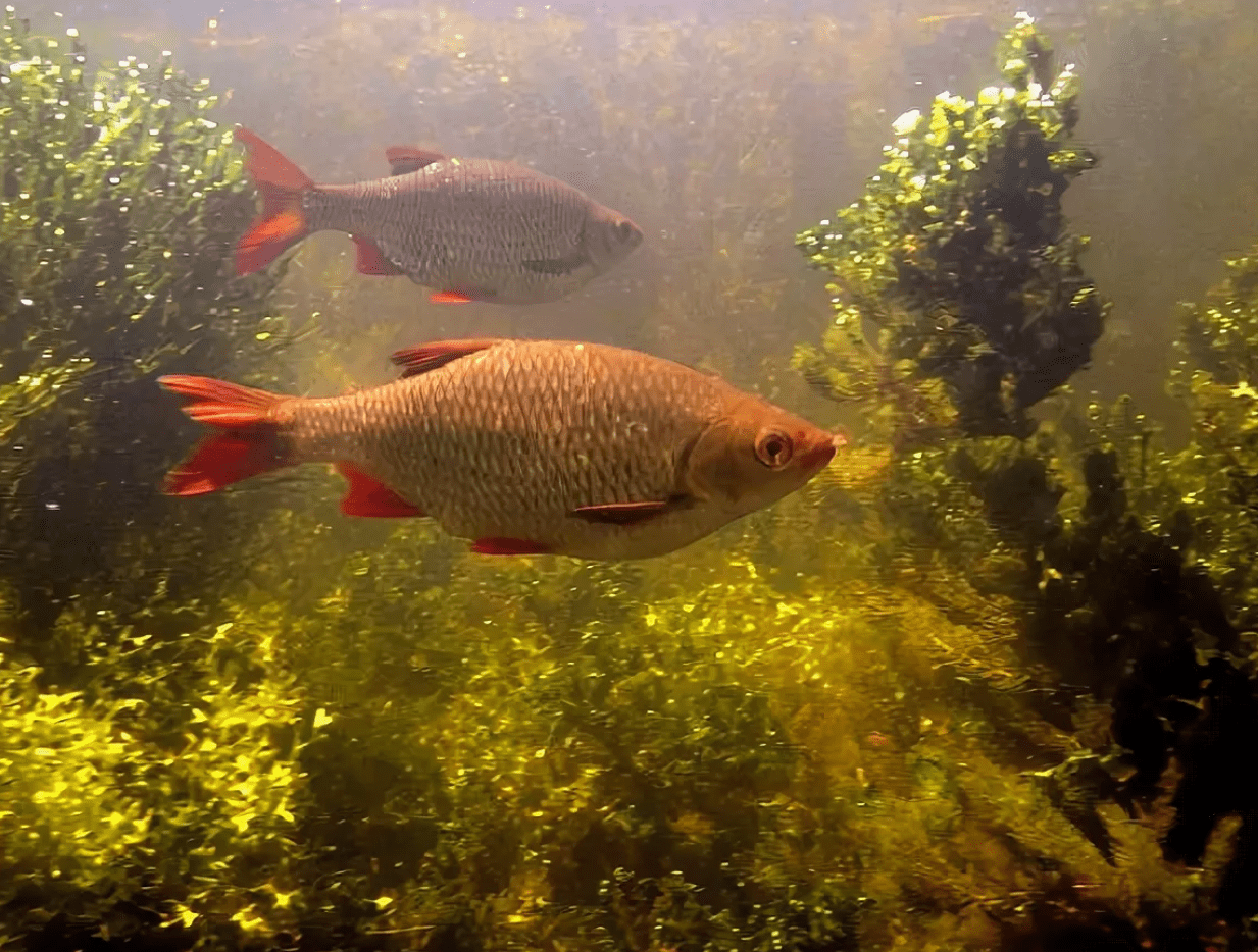 А еще на заросших тростником озерах интересна поплавочникам и спиннингистам красавица — красноперка. Вообще, интересы этих двух способов ловли сильно пересекаются на заросших озерах при ловле с лодки. Есть поплавочники, любящие широко поискать свою рыбу, а не только у берегов, и они отправляются вглубь водоема, ищут свою рыбу в окнах, по краям травы, поднимающейся к самой поверхности.