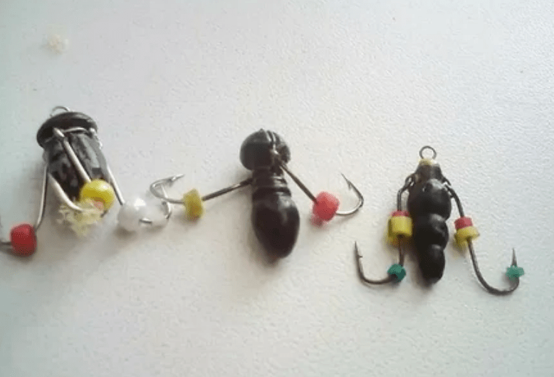 Для этой цели была использована «медуза» – вольфрамовая или свинцовая вытянутая приманка в виде личинки или бочонка, к которому на свободной подвеске прикреплены крючки с нанизанными на них бусинками и кембриками.