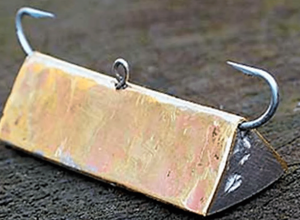 Готовое изделие после обрабатывания напильником и полировки можно описать следующим образом — балансир-трехгранка без нижнего тройника и хвостового оперения.