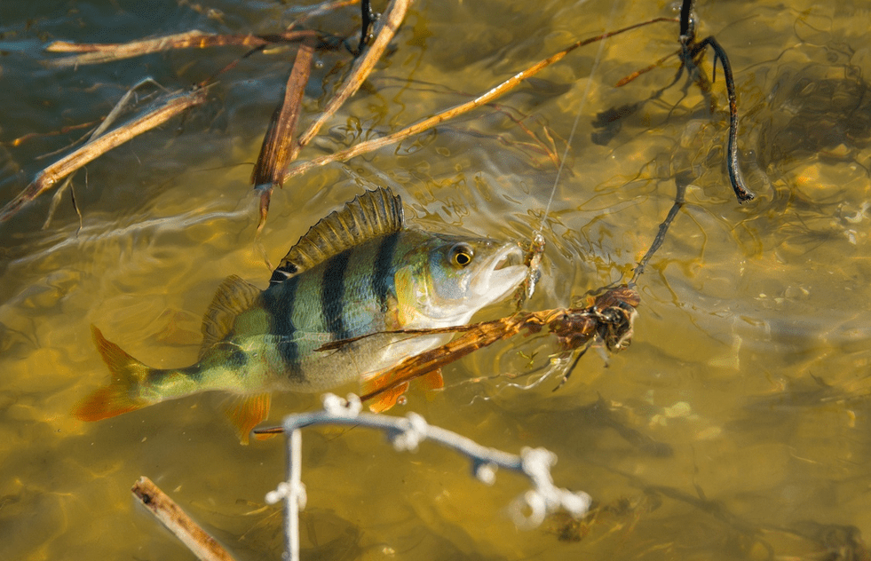 Одно из любимых мест окуня – затопленные кусты и коряги. Как часто я наблюдал окуня, который сторожит в подобной засаде свою добычу.