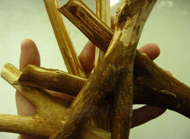 Первым этапом в изготовлении этой простой снасти является выбор нужной заготовки из вербы, ивы, орешника и прочих деревьев. Очень важно чтобы заготовку можно было без усилий очистить от коры таким образом, чтобы ее поверхность стала абсолютно гладкой. Именно гладкая поверхность позволяет рыбаку работать с легкостью с рогаткой, да и леска на ней не будет запутываться.