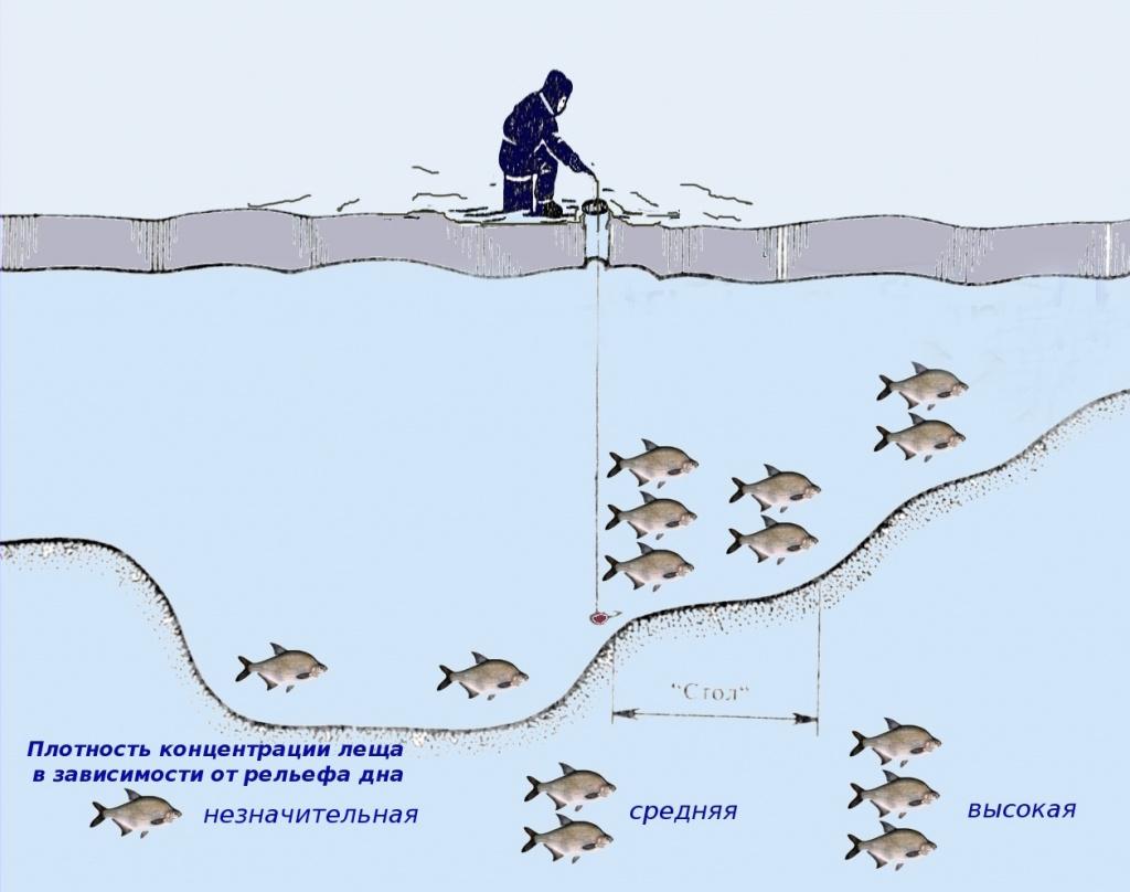 Активность леща с наступлением морозов, конечно, снижается, однако потребность в белковой пище заставляет рыбину искать соответствующее пропитание, чем и пользуются опытные рыболовы. На мелководье добыть эту рыбу нереально, его поиски ведут в самых глубоких местах водоема.