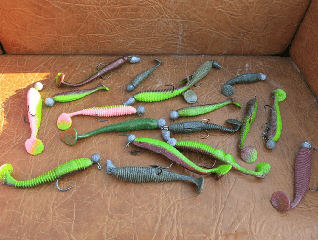 Основной арсенал приманок примерно известен уже заранее. По предыдущим осенним сезонам — это достаточно крупные виброхвосты средней длиной 4,5 и 5,5 дюймов. Несколько реже использую размеры крупнее — до 6 дюймов, и, очень редко, мягкие приманки меньше 4 дюймов.