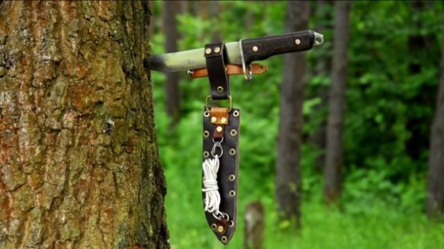 Не многим известно, но из штык-ножа можно сделать факел. Для этого необходимо, вынуть фиксатор из ножен и закрепить его на нижнем металлическом выступе. После, следует намотать промасленную ткань и поджечь. Руки при этом остаются в безопасности, вероятность получить ожог минимальная.
