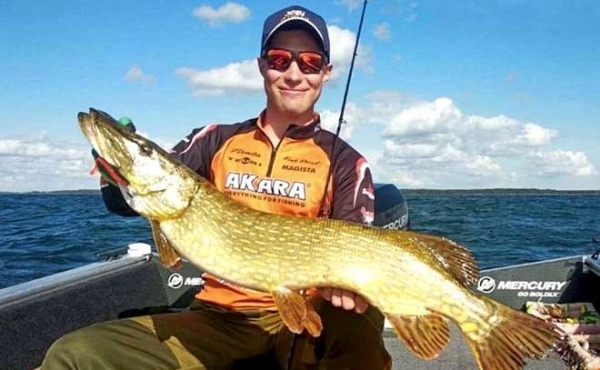 И после пары часов ловли на больших волнах мы убедились в правильности принятого решения. Помимо стандартной мелочевки Илье улыбнулась удача: на его ультралайтовый спиннинг Black Shadow 3.5-10.5 грамма с рипером Akara Minnow 100 в томатно-чёрной расцветке клюнула метровая щука!