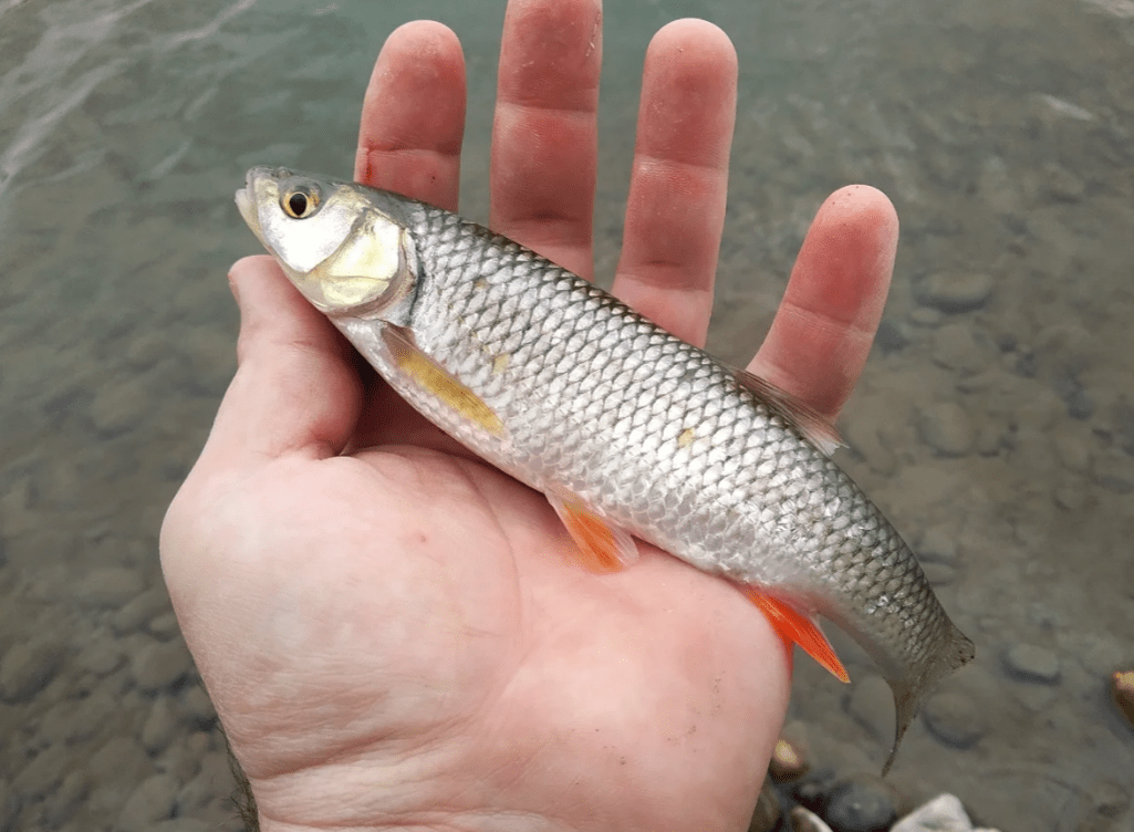 Поначалу ударов практически не было, но спустя минут десять, прямо с переката вытащил первого в этом году голавля, размером чуть больше ладошки, настроение прям сразу поднялось! 🙂