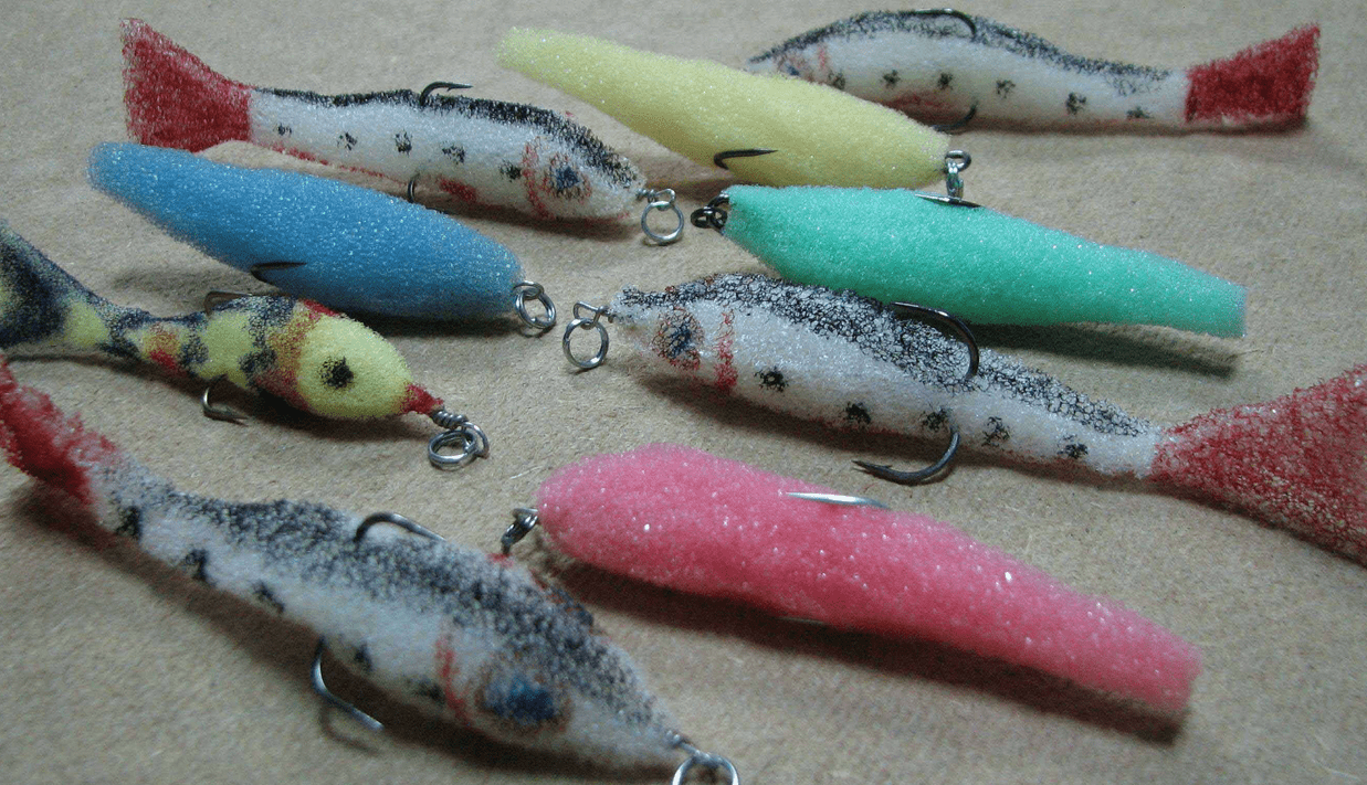 Используя самые дешевые поролоновые разноцветные губки, можно изготовить наиболее уловистые приманки.