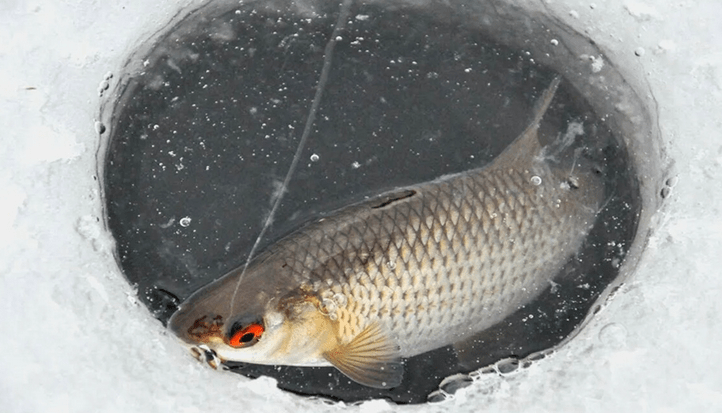 Поэтому, найдя и закормив точку старайтесь вести себя как можно осторожнее и тише, также старайтесь избегать светлые участки льда — рыба отлично видит непонятное пятно в виде вашей пятой точки и постарается обойти такое место!