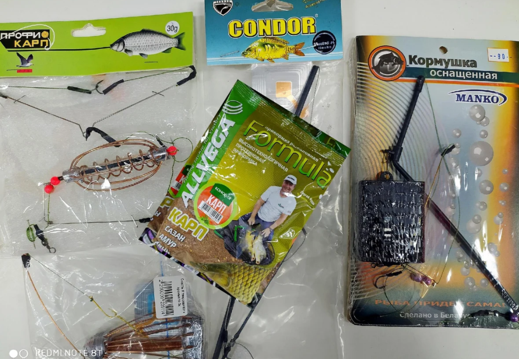 Но не все умеют его ловить. Как правило новички рыбачат его на закидушки из китайских спиннингов с бубенчиками, и покупают в магазине готовую снасть а-ля карповый монтаж в сборе. Плюс пакетик прикорма на котором нарисован карп. Выглядит это так и стоит не дорого: