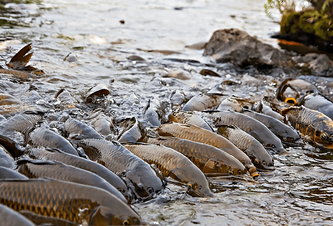И только после того, как управятся первые — к процессу приступает взрослое поколение. Из всего этого количества остаётся около половины — обновлённые версии сазанов становятся полностью самостоятельными уже через двенадцать дней.