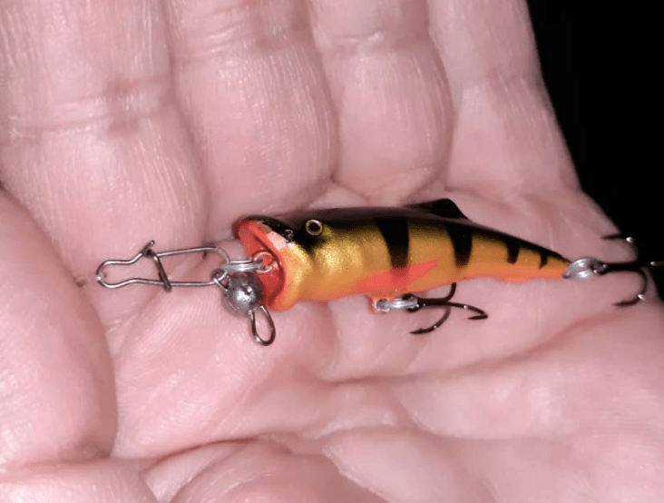 В этот раз я буду ловить на ультралайт с тестом до четырех граммов и уже проверенным поппером в расцветке «Окунь» весом четыре грамма. Единственной хитростью будет противоветровая огрузка в 0.75 грамма в виде грузика, подвешенного на карабин. Это нужно, чтобы пробивать ветер и во время проводки немного заглубить поппер, а так как глубина в озере до метра, другие приманки будут только собирать траву.
