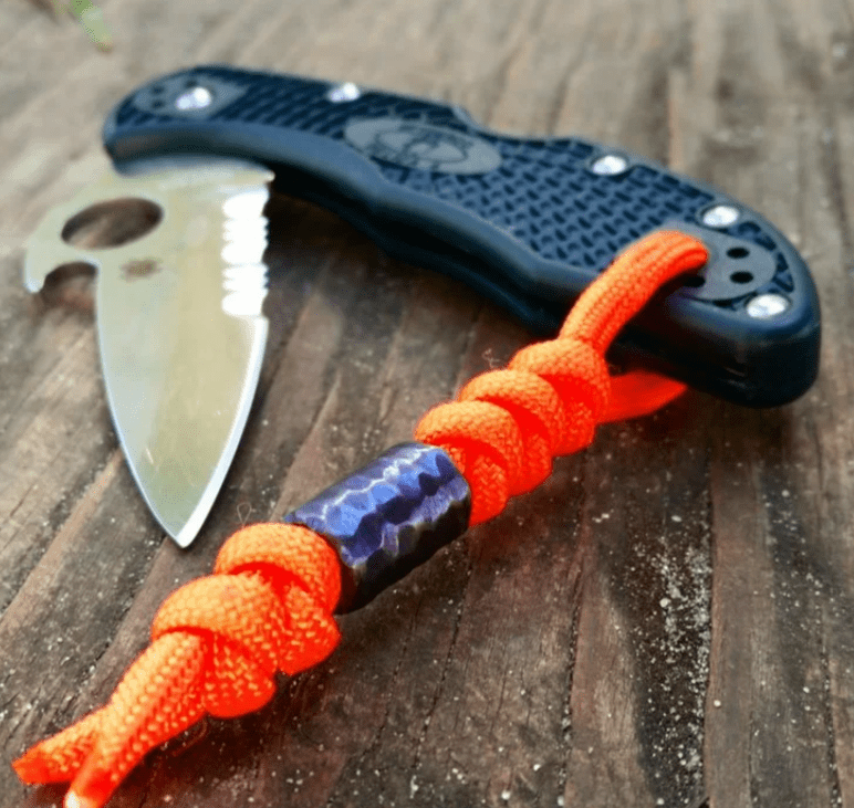 Вообще, на ножах, как я считаю, темляки без надобности, более того, эти плетения с бусинами будут только мешать. Все эти разговоры, что современный темляк и паракорда можно распустить на нити и использовать в каченстве ниток, лесок и верёвок – это не более чем разговоры, причём бредовые.