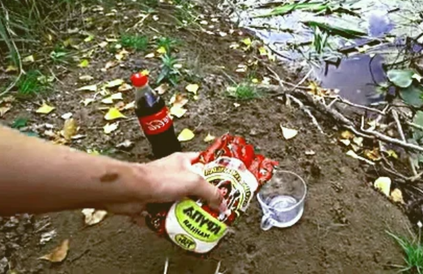 Я сразу обратил внимание на то, что на берегу у него стояли две бутылки, одна с кока-колой, а другая с минеральной водой. Минералку он пил, а колу добавлял в свою прикормку. Я удивился, но не предал особо этому значение.