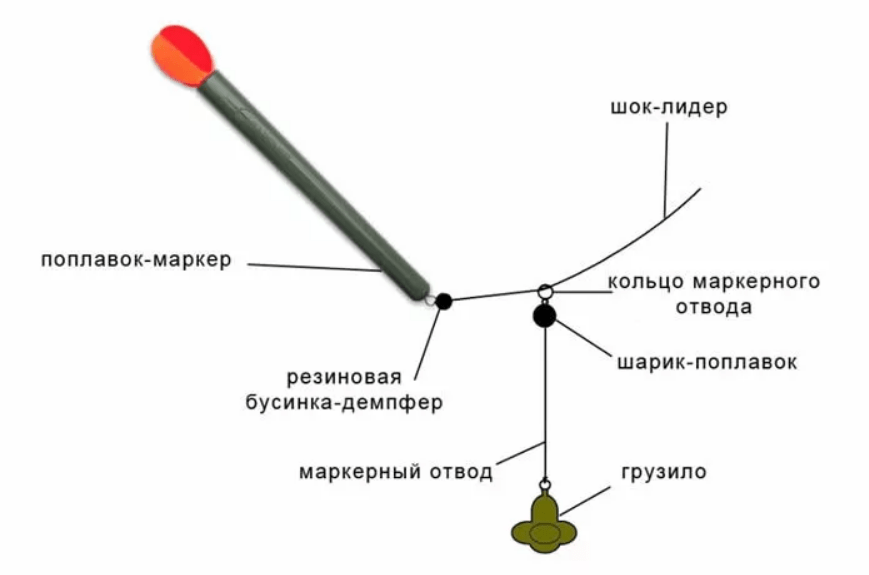 Удочка с поплавком-маркером используется опытными рыбаками для изучения рельефа водоема в предполагаемом месте ловли.