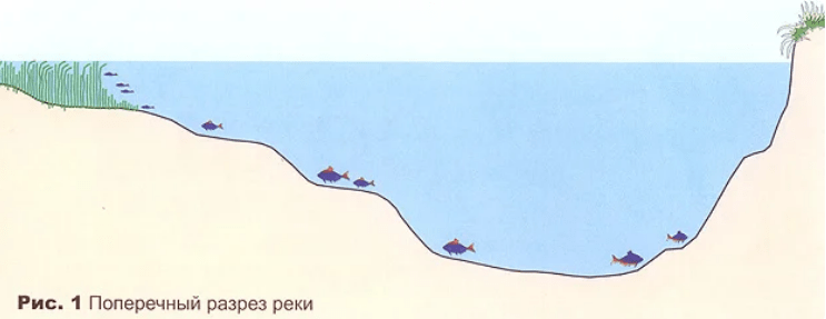 - при сбросах воды рыба поднимается в толщу воды и стоит в основном над руслом или вблизи него.