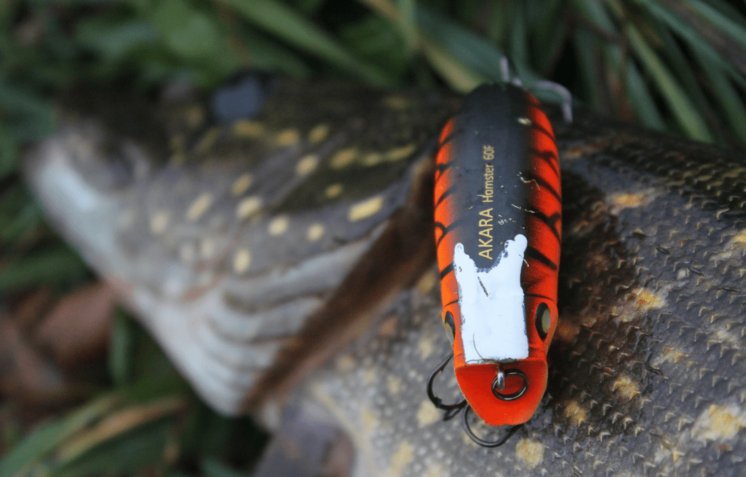 Если просто-напросто равномерно проводить «Хомяка», а именно так переводится название этого воблера, то он начинает очень активно качать боками и вилять всем телом. При этом заглубляясь не более, чем на 20 см от поверхности воды.