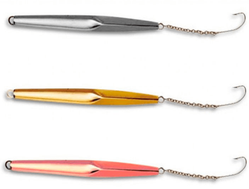 Это типичная зимняя приманка, разработанная для ловли такой рыбы, как окунь и судак. Крючок крепится к основанию цепочкой, оснащенной трехцветным кембриком.