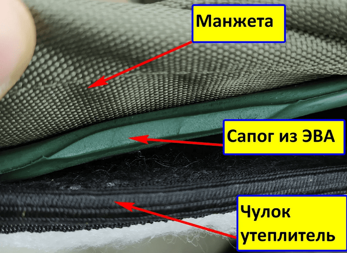Все сапоги оказались на удивление одинаковыми по строению, что импортные, что наши родные. У всех внутри чулок, снаружи сапог и манжета сверху. Изнашивается любой среднестатистический чулок примерно за равное время.