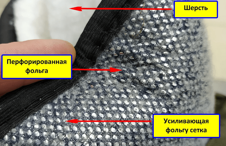 У «наших» же чулки оказались толще и с добавлением шерсти. Плюсом отличная перфорированная прослойка из фольгированного материала. А у самых недорогих Казанской фирмы Барс вообще еще и фольгированный слой усилен сеткой сверху.