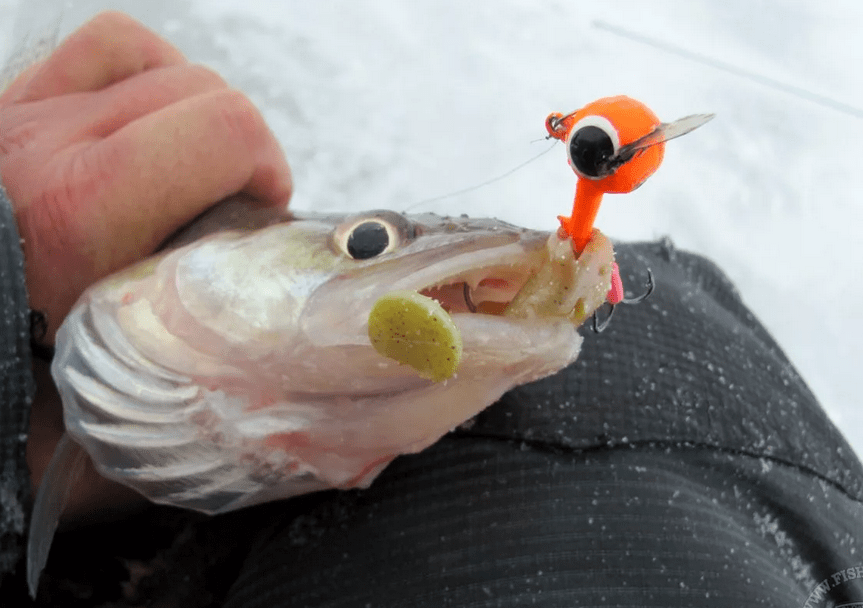 Хотя такое при охоте на клыкастого зимой случается редко. Предпочтение джиг-головке объясняется тем, что при вертикальном джиговании с чебурашкой всегда больше проблем. Очень часто происходит захлестывание лески за крючок. Что сказывается на качестве игры приманки и на уловистости снасти.