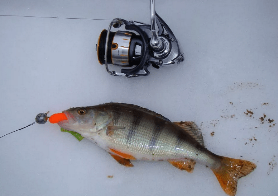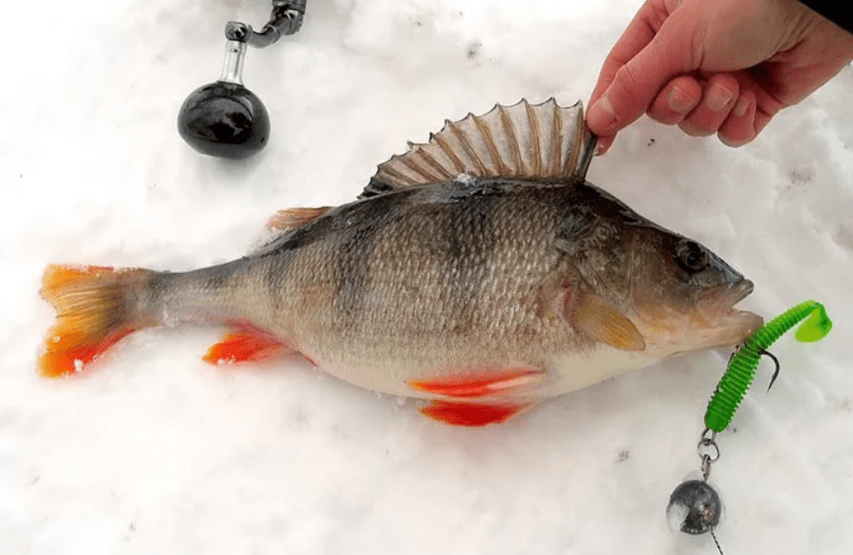 Рыбалка зимой на джиг этого хищника отличается от описанных выше только размером используемых джиг-головок и силиконовых приманок. Первые обычно весят примерно 1 г, а вторые, из-за невозможности купить соответствующий размер, режутся острым ножом из крупных силиконок, например, червей.