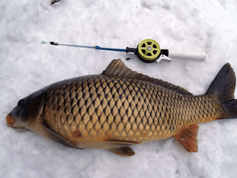 Подготавливая снасти к зимней ловле карпа помните, что даже с поправкой на зимнюю леность, это сильная рыба. Так что и снасти следует подбирать соответствующие. Возьмите с собой усиленную кивковую зимнюю удочку и поставьте на леску крючок №4, не меньше.