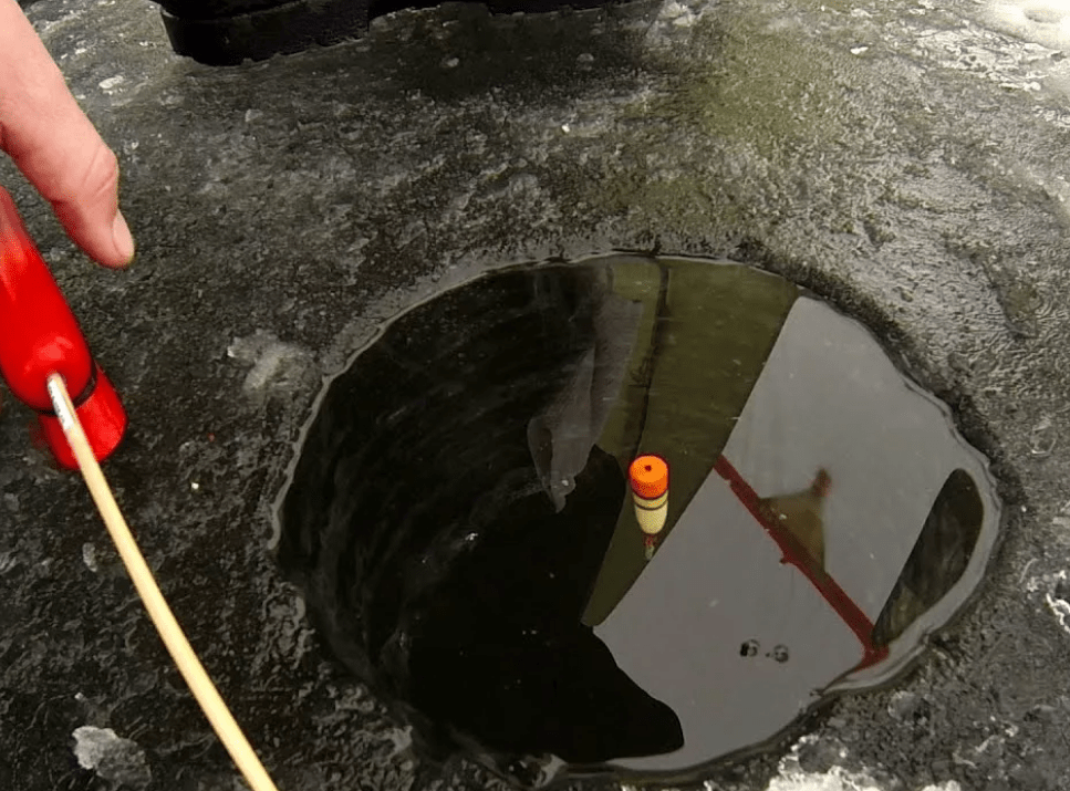 В более морозную погоду его погружают в воду полностью. Подбирать поплавок и грузики следует таким образом, чтобы при определенном погружении первого в толщу воды леска, проходящая от конца удильника до его вершинки, не вытягивалась в одну линию.