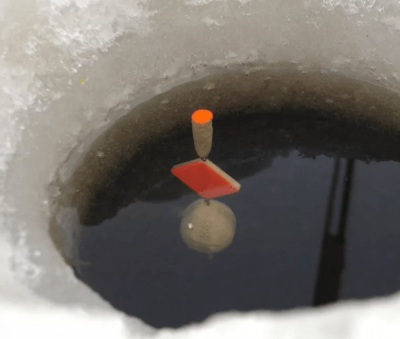 Если рыбалка происходит при температуре воздуха от -3 градусов и выше, можно воспользоваться поплавком с короткой антенной, которую высовывают из воды на пару-тройку сантиметров.